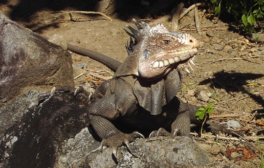 Iguana delle Piccole Antille: L'iguana delle Piccole Antille, nome scientifico iguana delicatissima, è un rettile che appartiene alla famiglia delle Iguanidae. Nell'aspetto è molto simile ad una grossa lucertola e si caratterizza per la presenza, in età adulta, di una lunga cresta sul dorso. Questa specie di iguana ha una corporatura più piccola rispetto a quella comune, infatti può raggiungere i 43 centimetri di lunghezza ed un peso di tre chili e mezzo. Il corpo dell'iguana delle Antille è rivestito da squame ed ha una colorazione verdastra sul dorso che tende al giallo nelle parti inferiori. La bocca è dotata di robusti denti e gli occhi sono protetti da palpebre mobili. L'iguana delicatissima vive nelle foreste tropicali, nei pressi dei corsi d'acqua, in particolare nell'America centrale e meridionale. Nell'arcipelago delle Piccole Antille l'animale è quasi estinto. Ha un'alimentazione prevalentemente erbivora anche se a volte mangia qualche insetto. Una caratteristica è che nel periodo riproduttivo le guance del maschi, che normalmente hanno un colore azzurro pallido, assumono un colore rosa. {!} inserisci il box Almanacco nel tuo sito o nel tuo blog